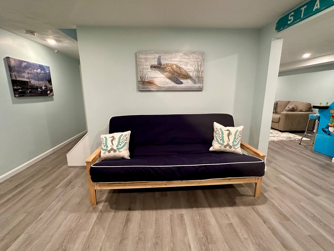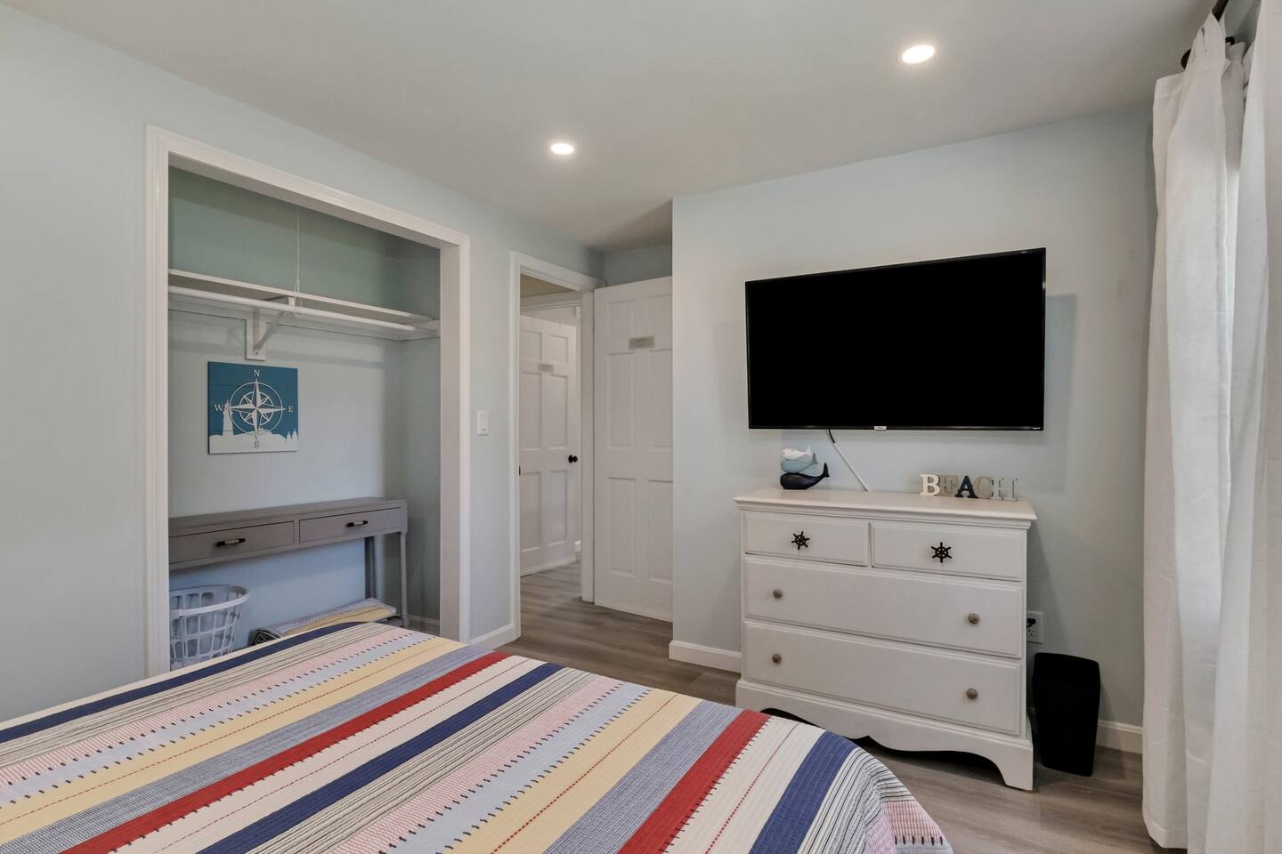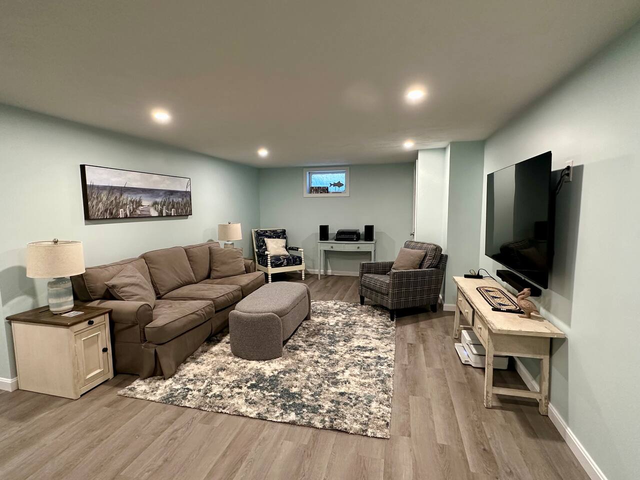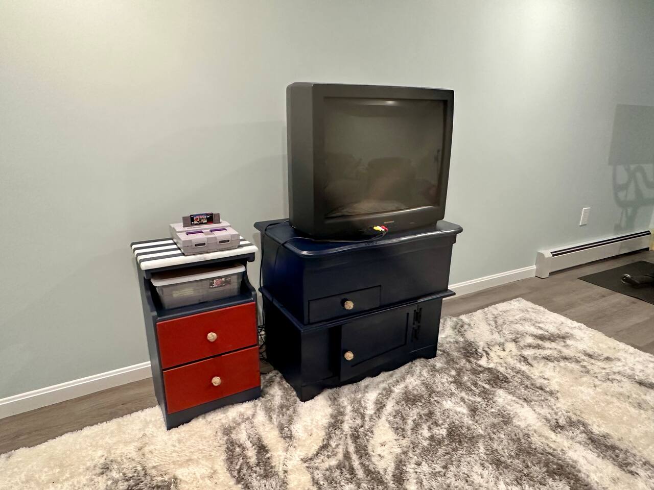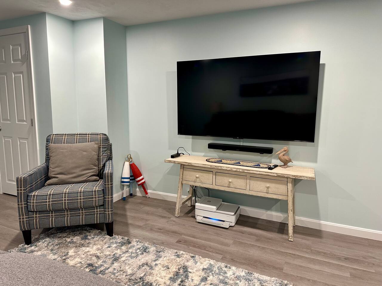 Primary bedroom: 1 king bed, private full bath, 43" smart tv & closet Bedroom 2: 1 queen bed, 50" smart tv, closet Bedroom 3: 1 full bed, twin bunk beds, 43" smart tv, closet *NEW AS OF SUMMER ‘24* FINISHED BASEMENT- features a full living/family room with a 65” Smart TV and Bose Speaker system. There is a pull out futon in this space. The media room features a 2 seater couch, chair, PELOTON, ARCADE 1 GAMES, and an older TV that works best for retro gaming systems (Super Nintendo w/a bunch of great games included!!)