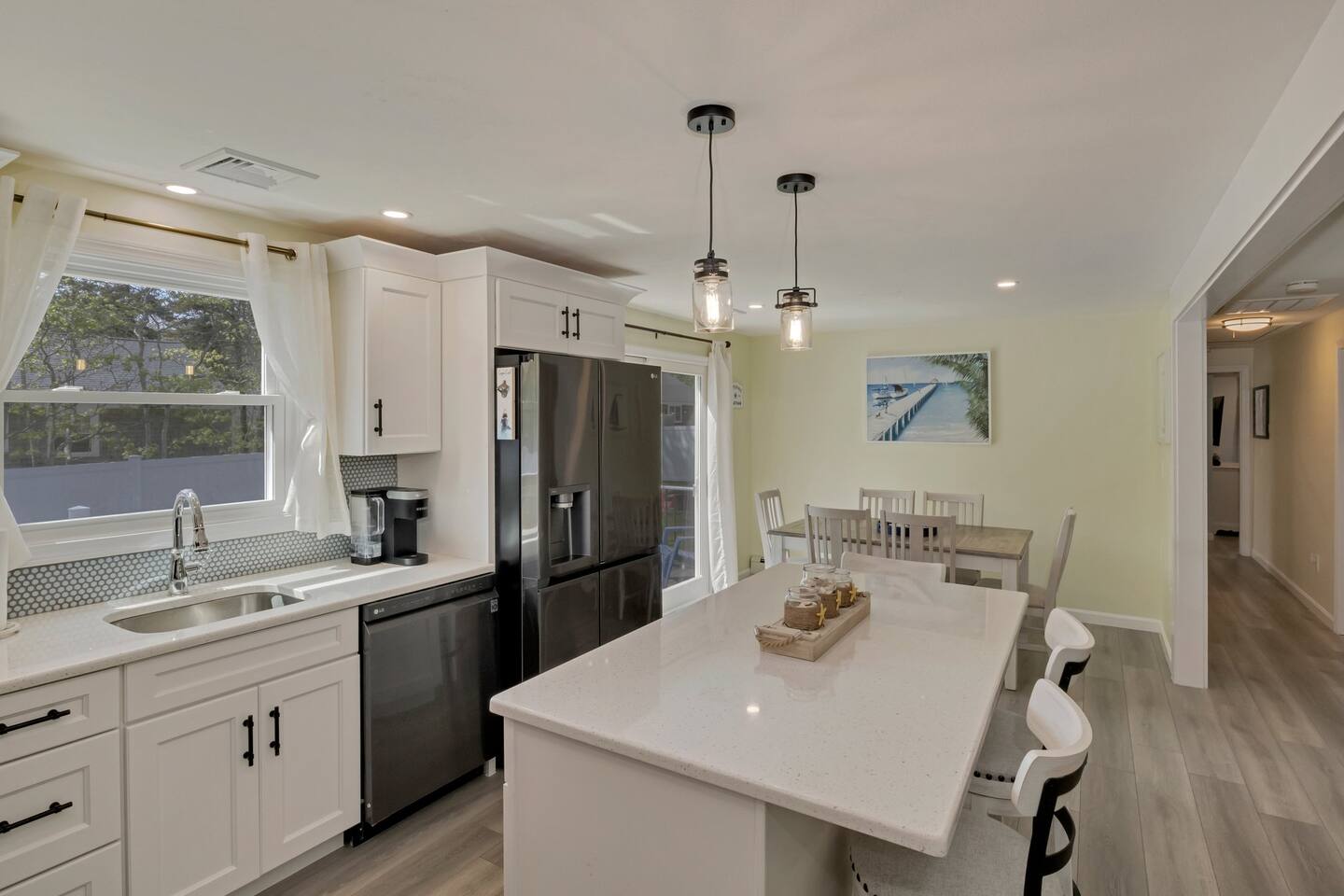 Modern 3 bedroom, 2 full bath single level home located in Chatham 1/10th of a mile to Old Colony Bike path and 1 mile to Forest Park Beach. Quick drive to other Sound-side Beaches. Home features super Fast WIFI, Central Air, Smart TV's, Brand New Kitchen, NEWLY FINISHED BASEMENT, All New Mattresses, 6 Foot Vinyl Fenced in Yard, Outdoor Shower, Fire Pit, Gas Grill, Large Composite Deck & Washer/Dryer! *DOG FRIENDLY* Directly across from 10 acres of public conservation land!
