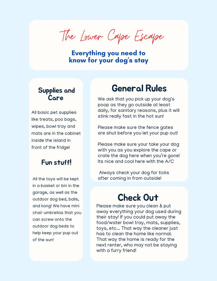 2 dogs max please. No cats, we are allergic! If you book your stay and bring your dog(s) we expect you to pick up all their poo (it gets alittle stinky in the hot summer sun, so by picking it up each day it reduces the smell.) We are not responsible if your dogs escapes from our yard or house. All doors to the gates lock and the front door locks itself. Please supervise your dog(s) at all times inside and outside. Our home is well equipped for dogs, but this isn’t your dogs normal home. They are going to sniff around inside and outside and may get into things. Please keep in mind things can grow outside very quickly ( weeds and mushrooms ) while we have a professional landscaper and weed treater but they don’t come as frequently in the colder months. Check the yard before you allow your dog(s) to play. Please crate your dog while away from the home. We are not responsible for what your dog gets into whether it’s inside or outside. Feel free to use the Polaroid to take a snap shot of your dog(s) enjoying their vacation and put it in our scrap book with the name and when they stayed! 😎